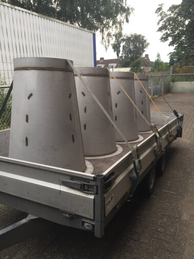 Probleemstelling: De bestaande stalen silo en transportschroef waren volledig doorgeroest. Samen met de klant is het ontwerp verbeterd en hebben wij een nieuwe rvs silo compleet met transportschroef en cyclonen gemaakt en gemonteerd.